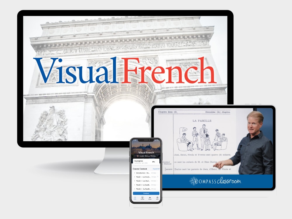 After teaching thousands of students how to read (and love) Latin, Dwane Thomas is now teaching French with his effective and engaging style. Visual French is a French language video curriculum that uses the ‘natural method,’ an approach that imitates how children naturally learn language. Dwane has been teaching students how to speak French using this method for many years and has seen impressive results.