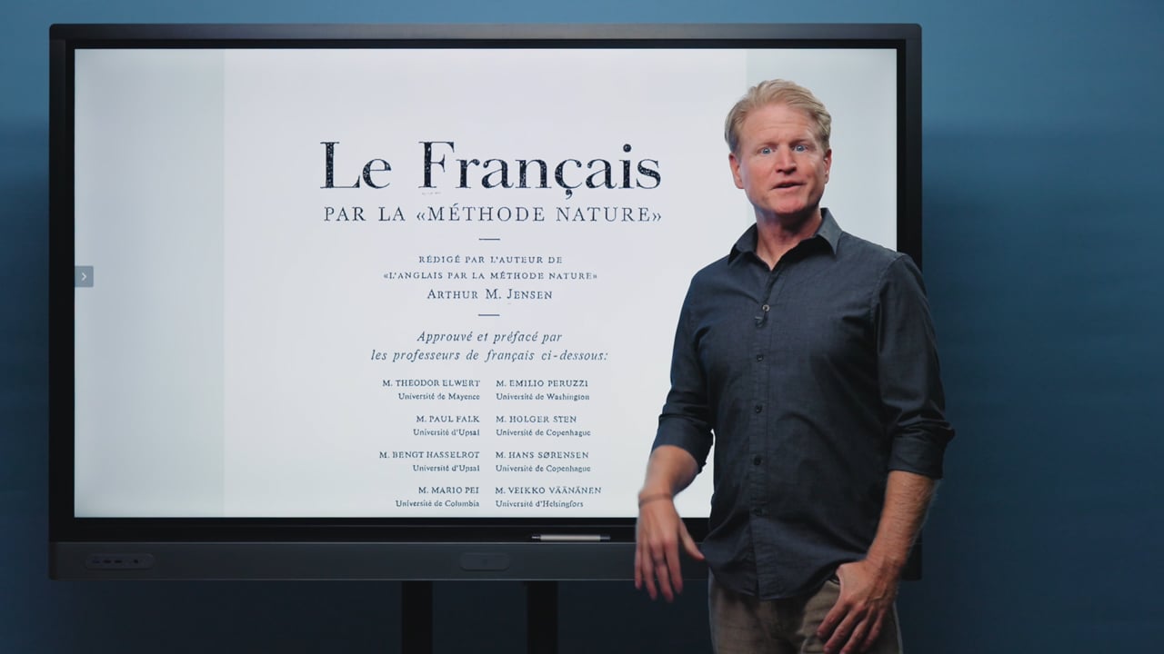 Note: This course requires Le Français par la Méthode Nature by Arthur Jensen (available as a PDF with course purchase, or separately as a print copy). Students read directly from the textbook alongside video instruction.
